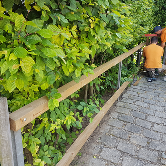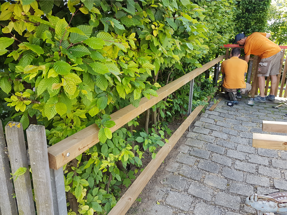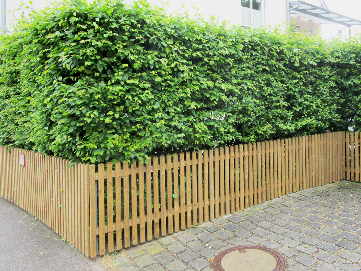 Gerne bieten wir Ihnen auch eine Zaunsanierung oder eine neue Zaunkonstruktion an. Dabei beschränken wir uns nicht nur auf das Material Holz. Zu unserem Materialportfolio gehören auch Metallzäune oder Konstruktionen mit HPL-Platten (Schichtstoffkombination aus Holz und Kunstharzen), wie etwa des Fabrikats Trespa.