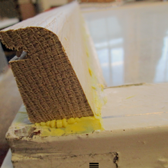 Die Wetterschenkel wurden von uns neu angefertigt und auf die alten Fenster geklebt. Die alten Gummidichtungen wurden ausgetauscht und die Beschläge wieder gangbar gemacht.
