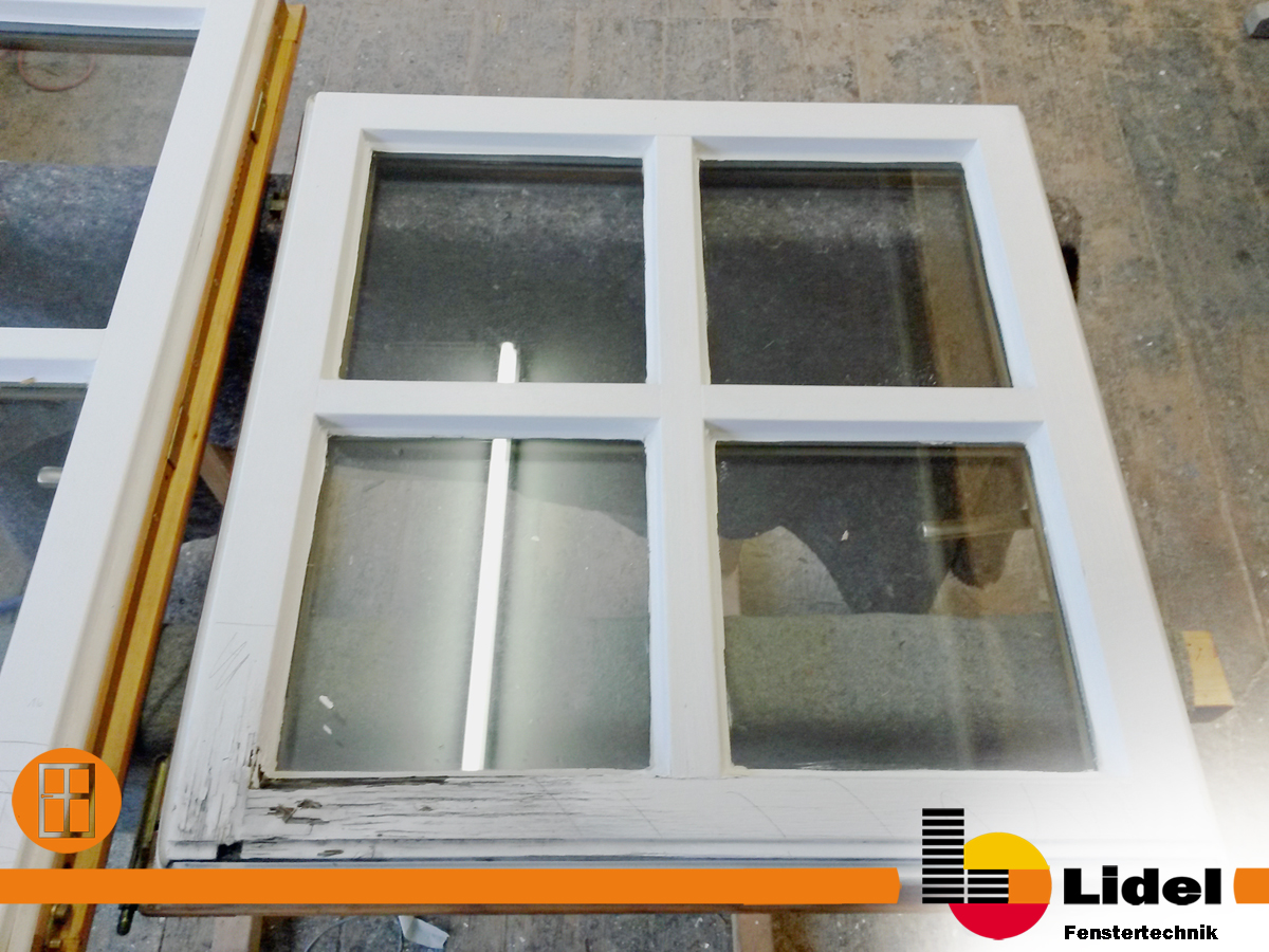 Mehrere alte Holzfenster wurden von uns fachgerecht überarbeitet und saniert. Die verwitterten Holzteile wurden heraus geschnitten und durch eigens für diese Fenster angepasste Ersatzstücke ergänzt. Mit der Sanierungsmasse Repair Care wurden die neuen Hölzer verspachtelt.