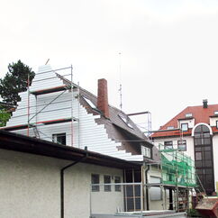 Montage einer hinterlüfteten Fassade aus Faserzementplatten in Augsburg - Oberhausen