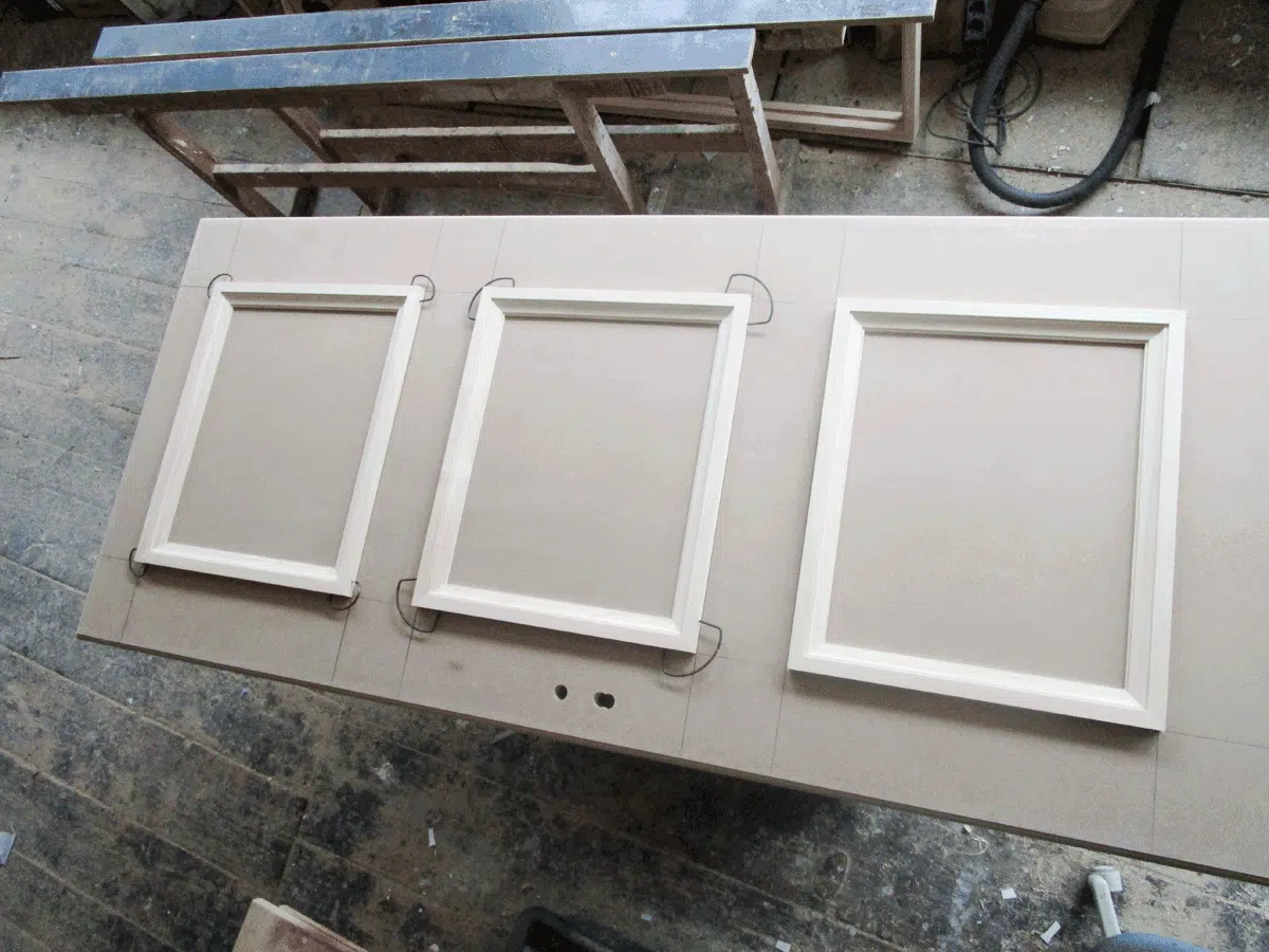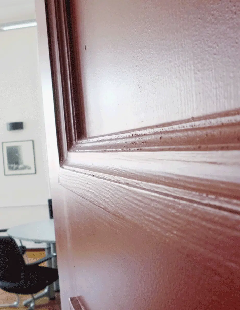 Für einen denkmalgeschützten Verwaltungsbau in der Augsburger Innenstadt durften wir neue Türblätter herstellen. Diese wurden von uns mit aufgesetzten Leistenrahmen ausgestattet. Bauseits wurden die Elemente später gestrichen.