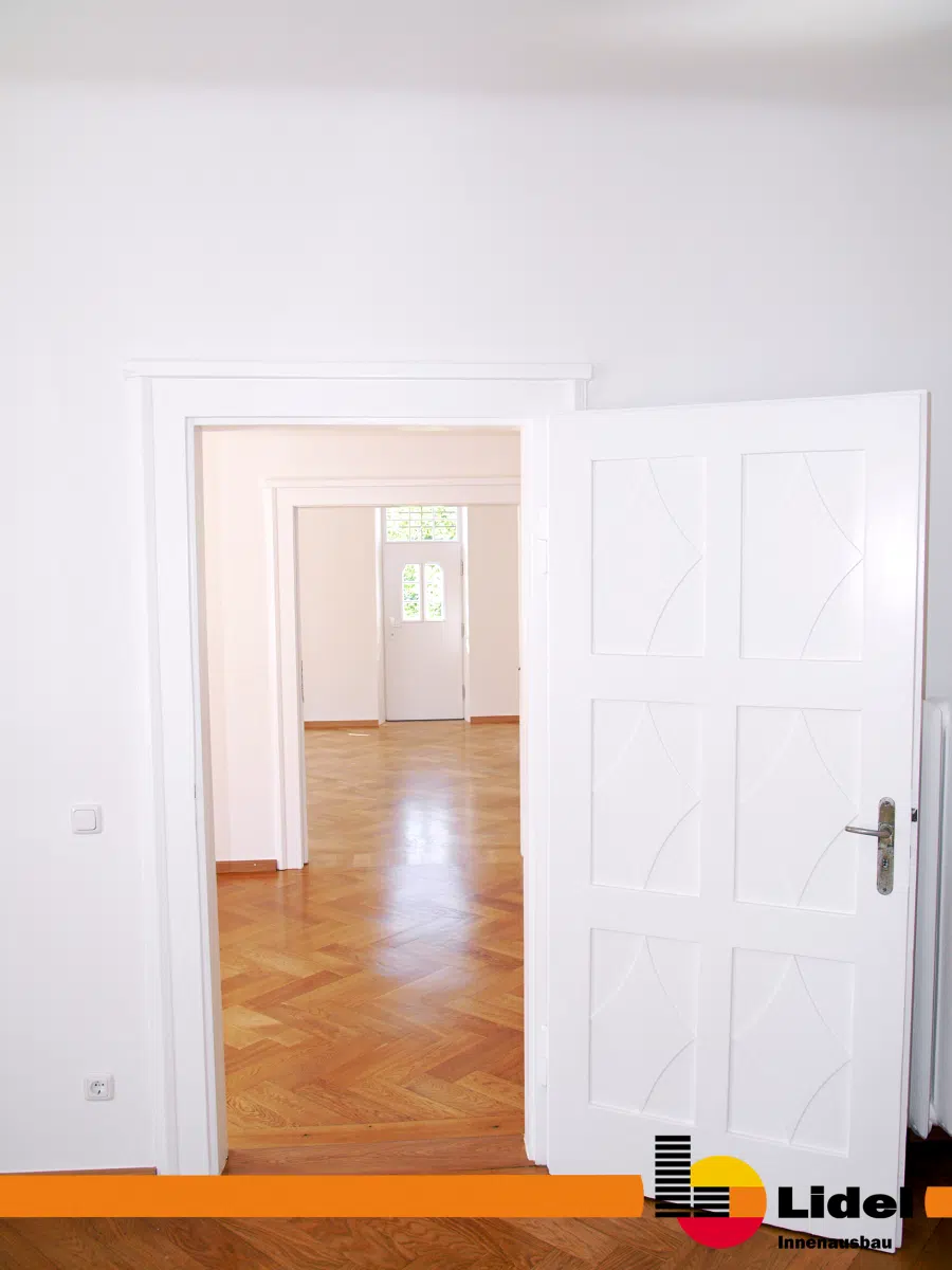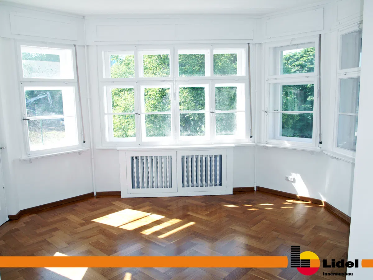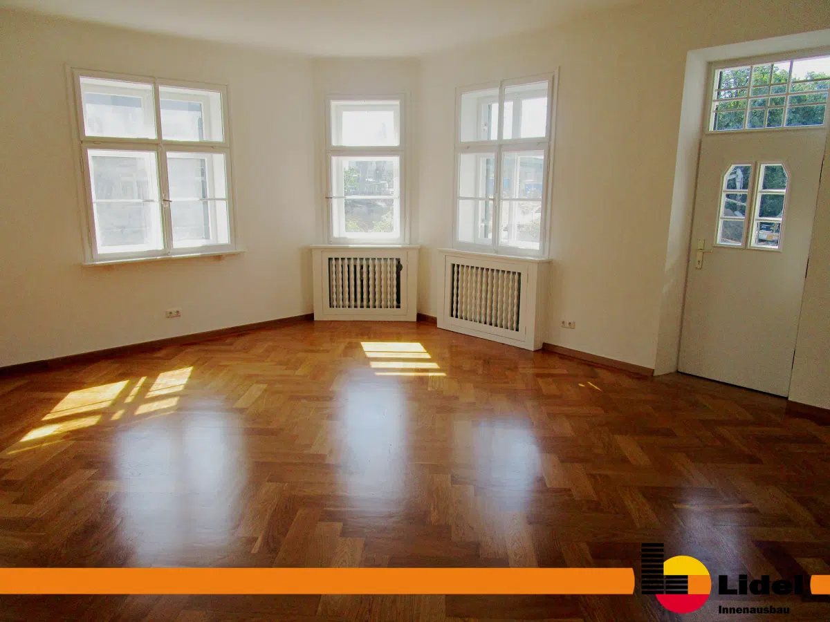 Zusammen mit dem Handwerkerpool - Die5 sanierte die Firma Lidel im Rosenau und Thelottviertel eine Wohnung. Dabei wurden sowohl die Böden geschliffen, neue Wände und Decken eingezogen, das Bad saniert, die Fenster überarbeitet, eine neue Beleuchtung eingebaut und die gesamte Wohnung strahlend weiß gestrichen.
